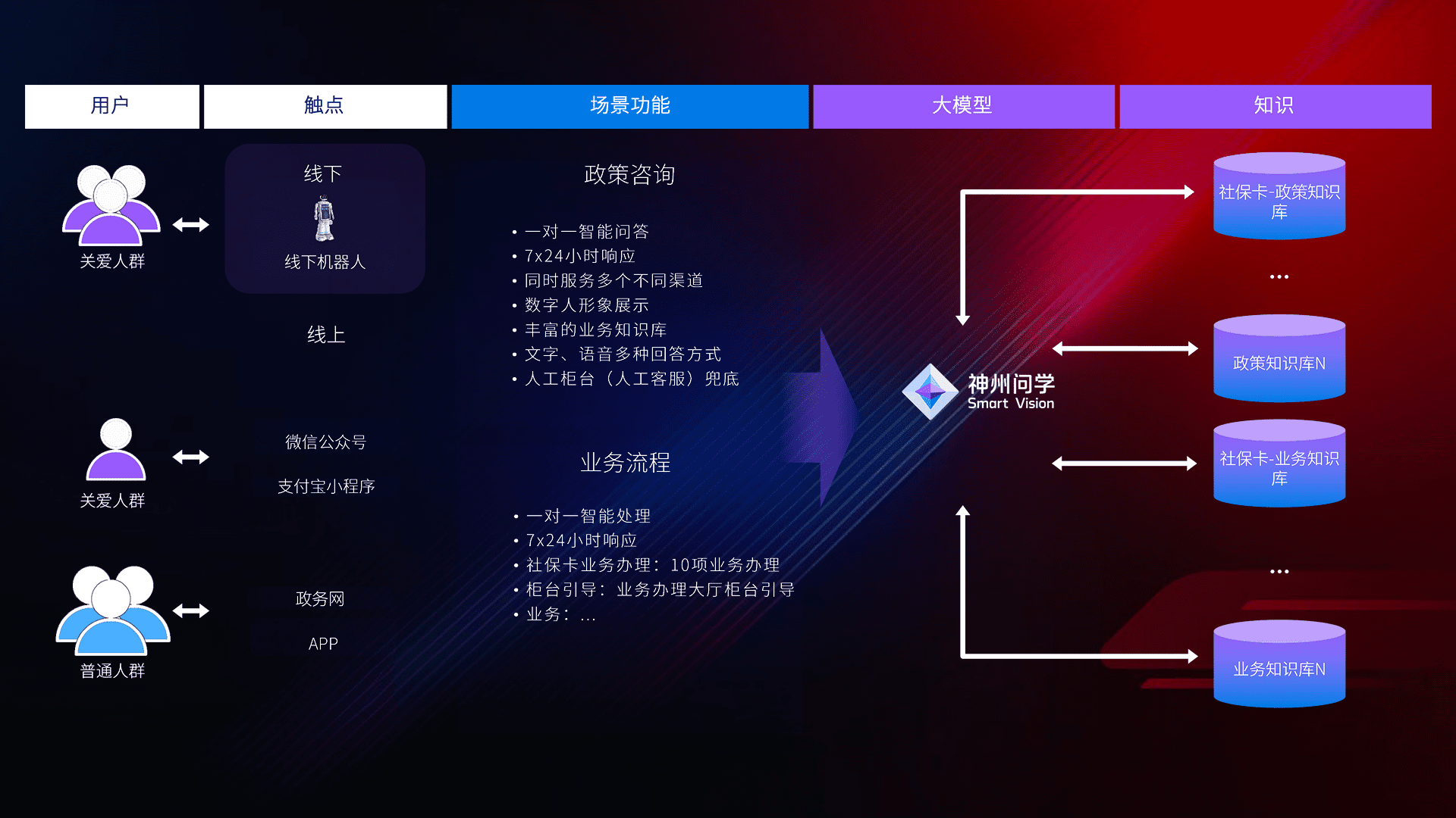 • 线上线下全覆盖:线上提供微信公众号、、支付宝小程序、、政务网、、、、app多种渠道,,,与线下机器人形成完整服务体系。。。
